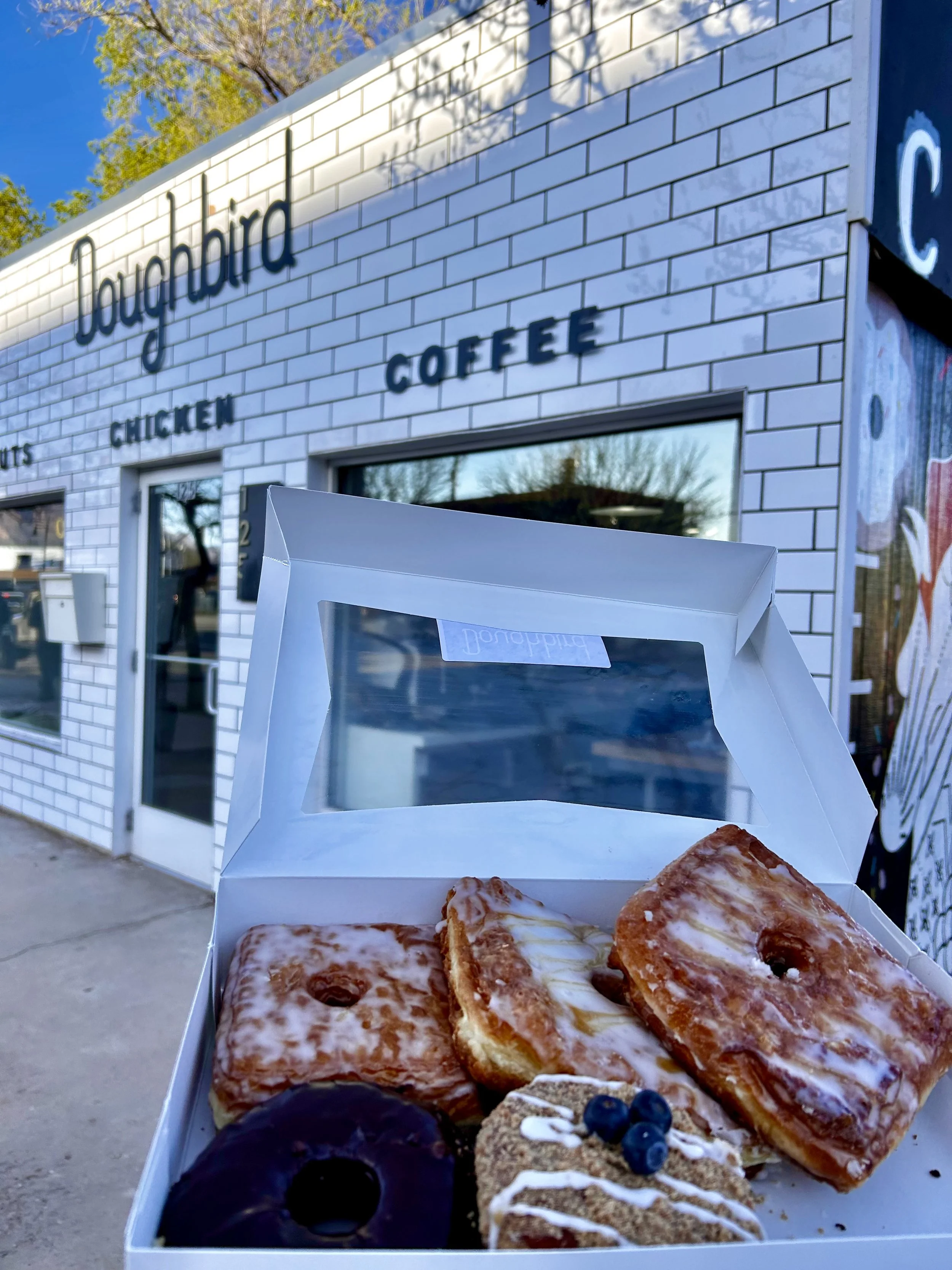 After a long day of hiking, we headed back to downtown Moab for dinner. We found a great Mexican restaurant, Miguel’s Baja Grill. With large portions, this was a great spot to refuel and relax. After eating way too much food, we made our way back to the campsite for our last night of camping. The next morning we packed up the campsite and made the mandatory stop for coffee and donuts. We found a great donut shop called Doghbirds who specialize in salted carmel cronuts. This was just about the most delicious thing we have ever eaten. If you want to treat yourself plan a trip to Doubirds! We also found a really cool coffee shop called Moab Garage Co with a speakeasy vibe sitting area that we essentially had to ourselves. Great coffee and other breakfast dishes are offered here. Since we got filled up on cronuts, we just enjoyed coffees.